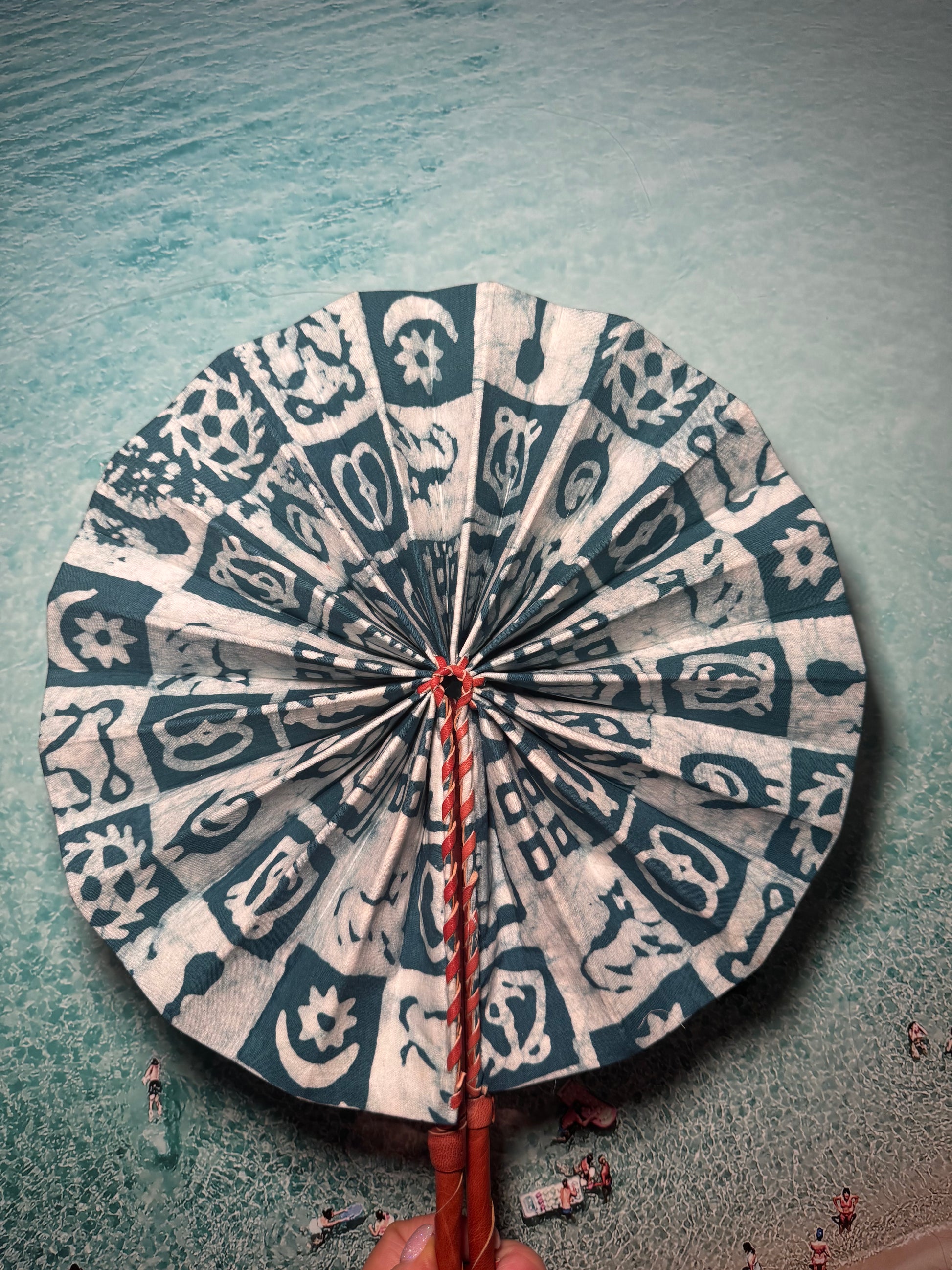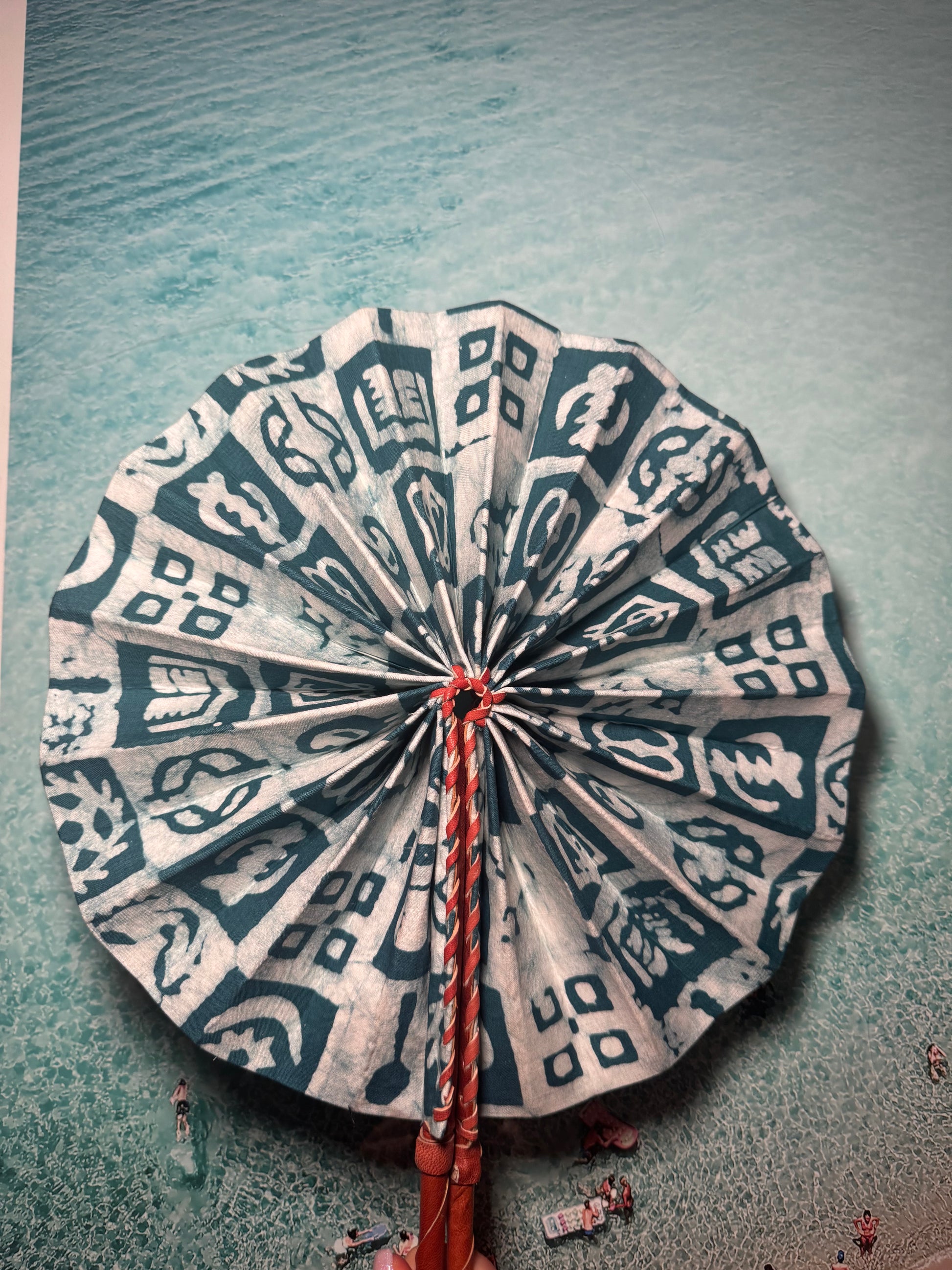 Feel the cool breeze with this one-of-a-kind handmade green and white print fan. Perfect for festivals, beach trips, or hot summer days. Keep it funky and functional with our unique design. Let the colours and patterns do the talking.