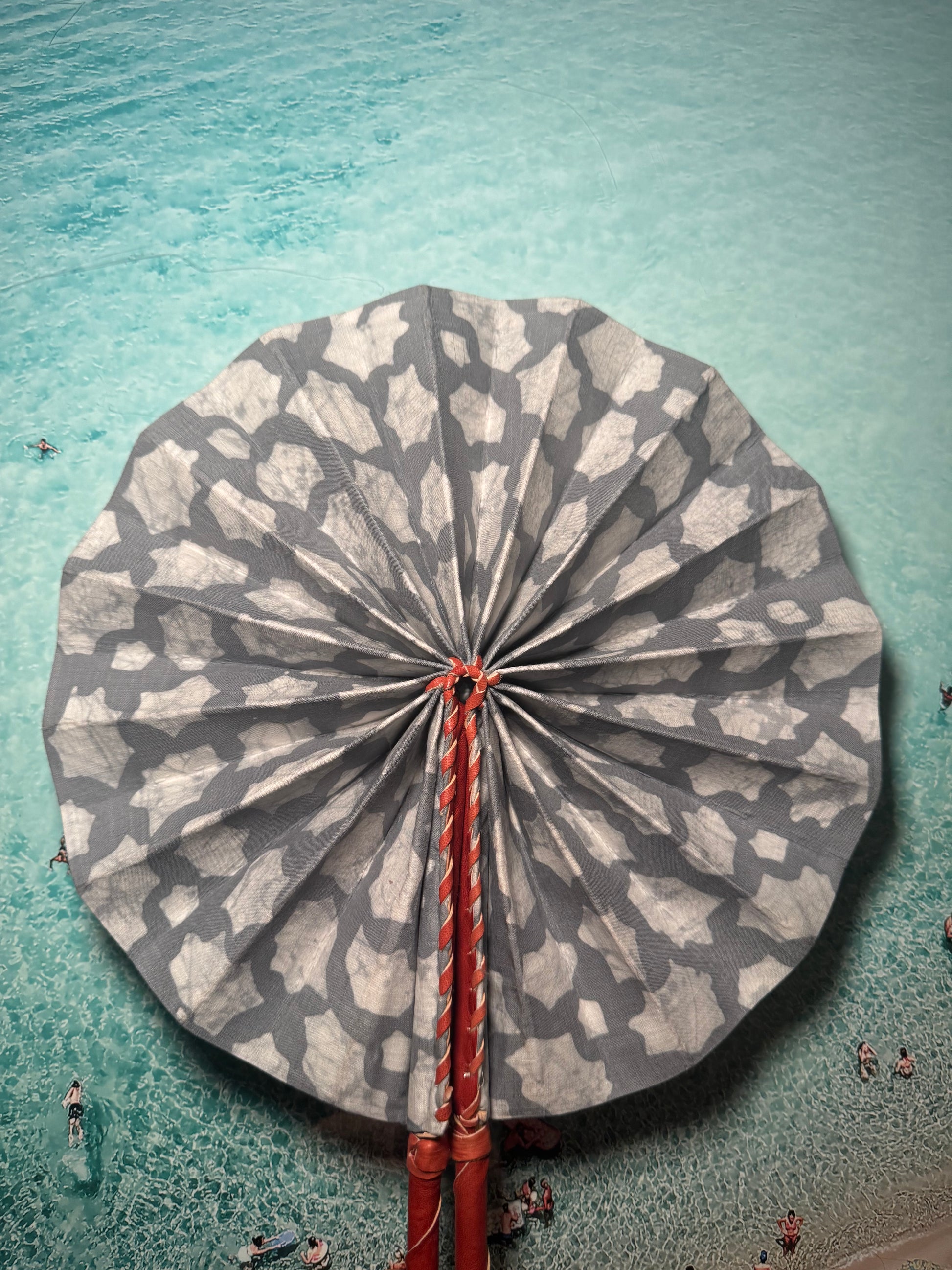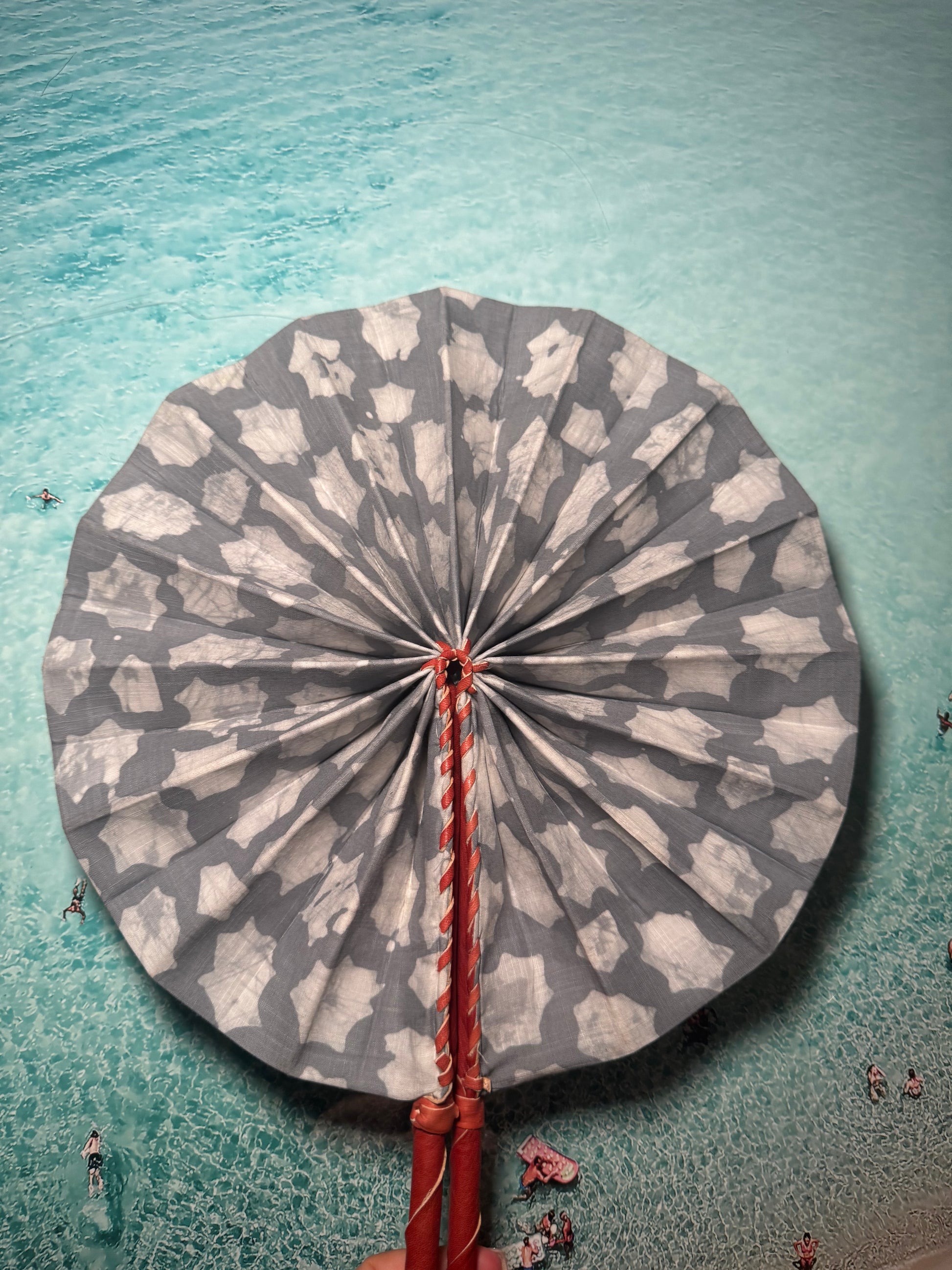 Feel the cool breeze with this one-of-a-kind handmade grey and white fan. Perfect for festivals, beach trips, or hot summer days. Keep it funky and functional with our unique design. Let the colours and patterns do the talking.