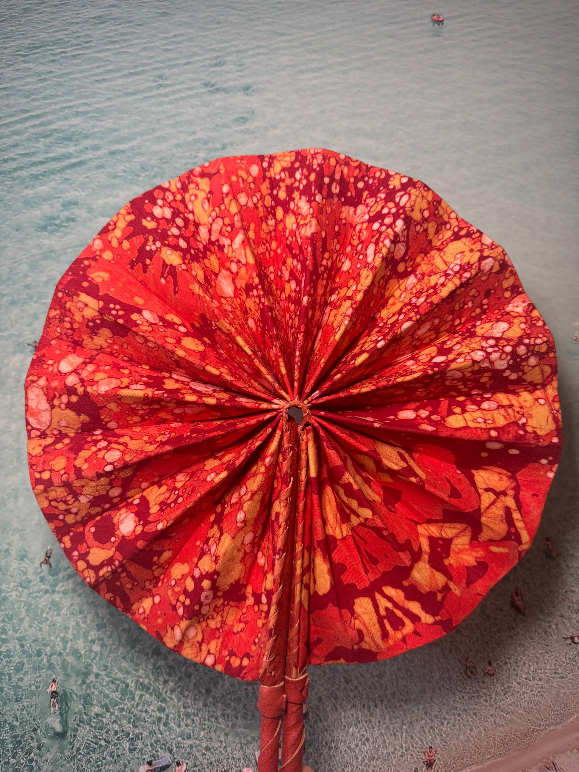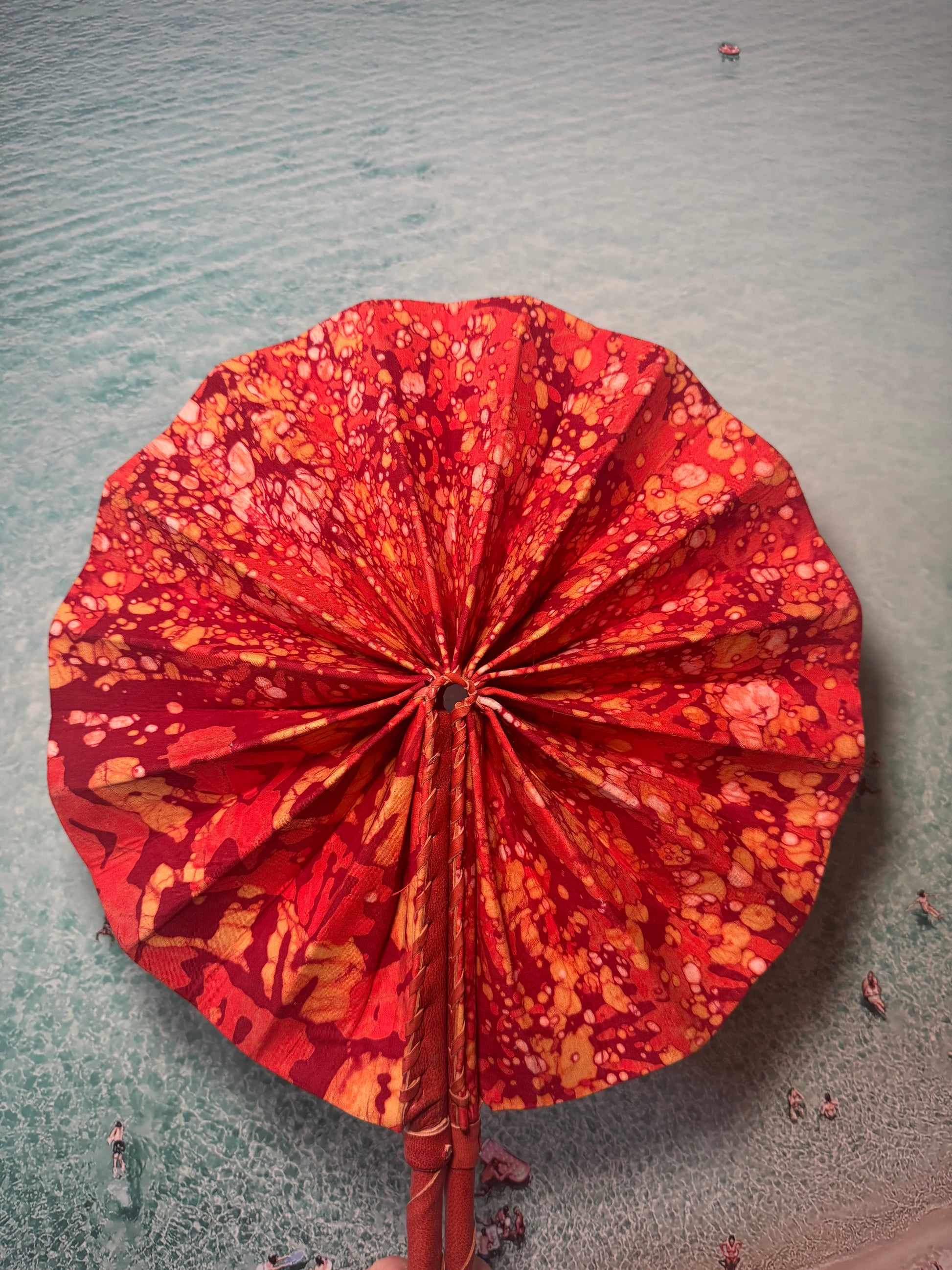 Feel the cool breeze with this one-of-a-kind handmade orange fan. Perfect for festivals, beach trips, or hot summer days. Keep it funky and functional with our unique design. Let the colours and patterns do the talking.