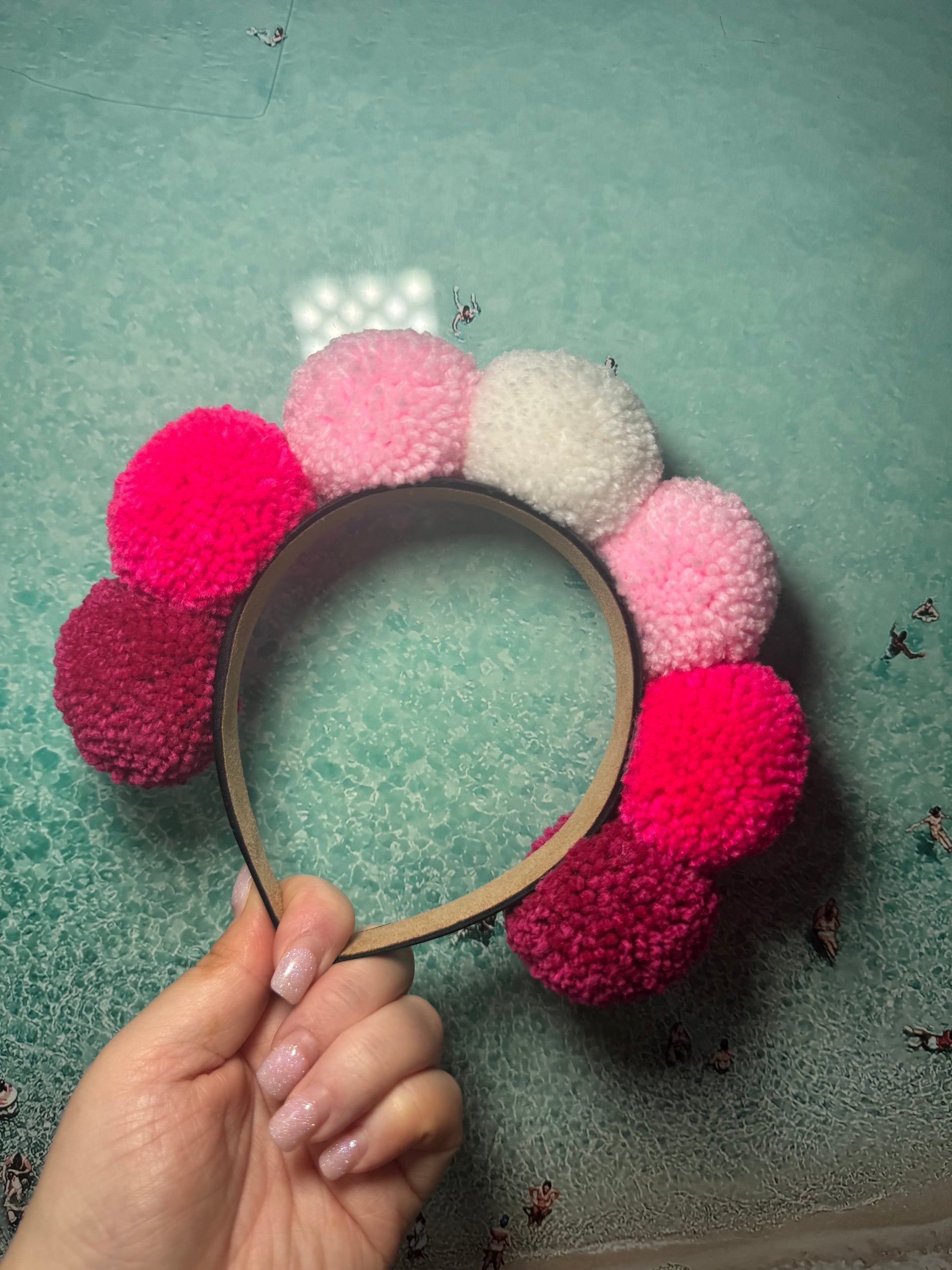 Make a bold, joyful statement with this Pink ombré Crown! Handcrafted for those who love to stand out, this oversized headpiece features a stunning array of fluffy, vibrant pom-poms in a full spectrum of pink colours . Designed for maximum impact, it’s perfect for festivals, parties, or any occasion that calls for fun, colour, and creativity. The sturdy yet comfortable base ensures all-day wearability, so you can shine bright without worry. If you’re all about bold, happy fashion, this crown is your ultimate dopamine-dressing essential!