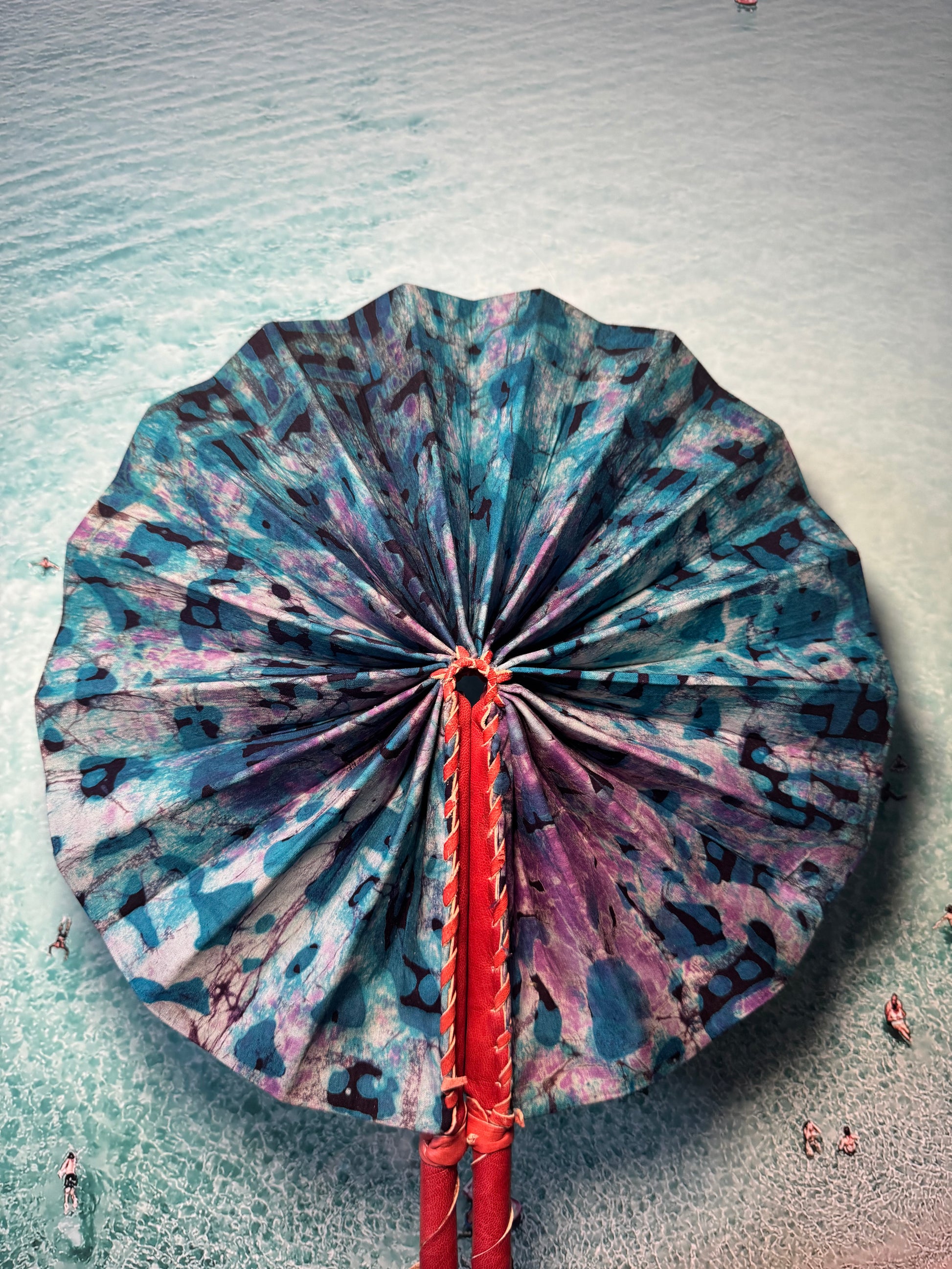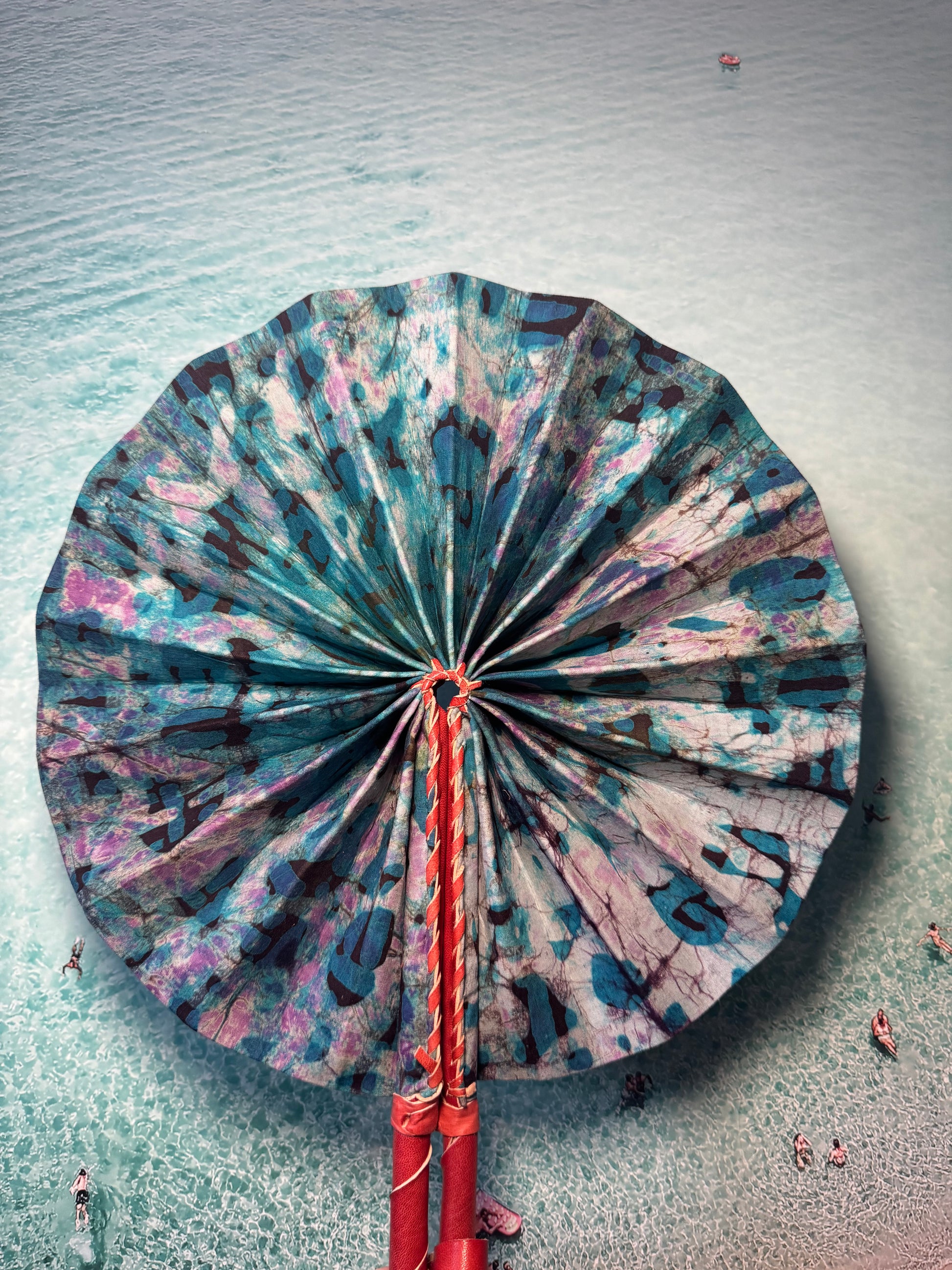 Feel the cool breeze with this one-of-a-kind handmade purple and blue tie dye fan. Perfect for festivals, beach trips, or hot summer days. Keep it funky and functional with our unique design. Let the colours and patterns do the talking.