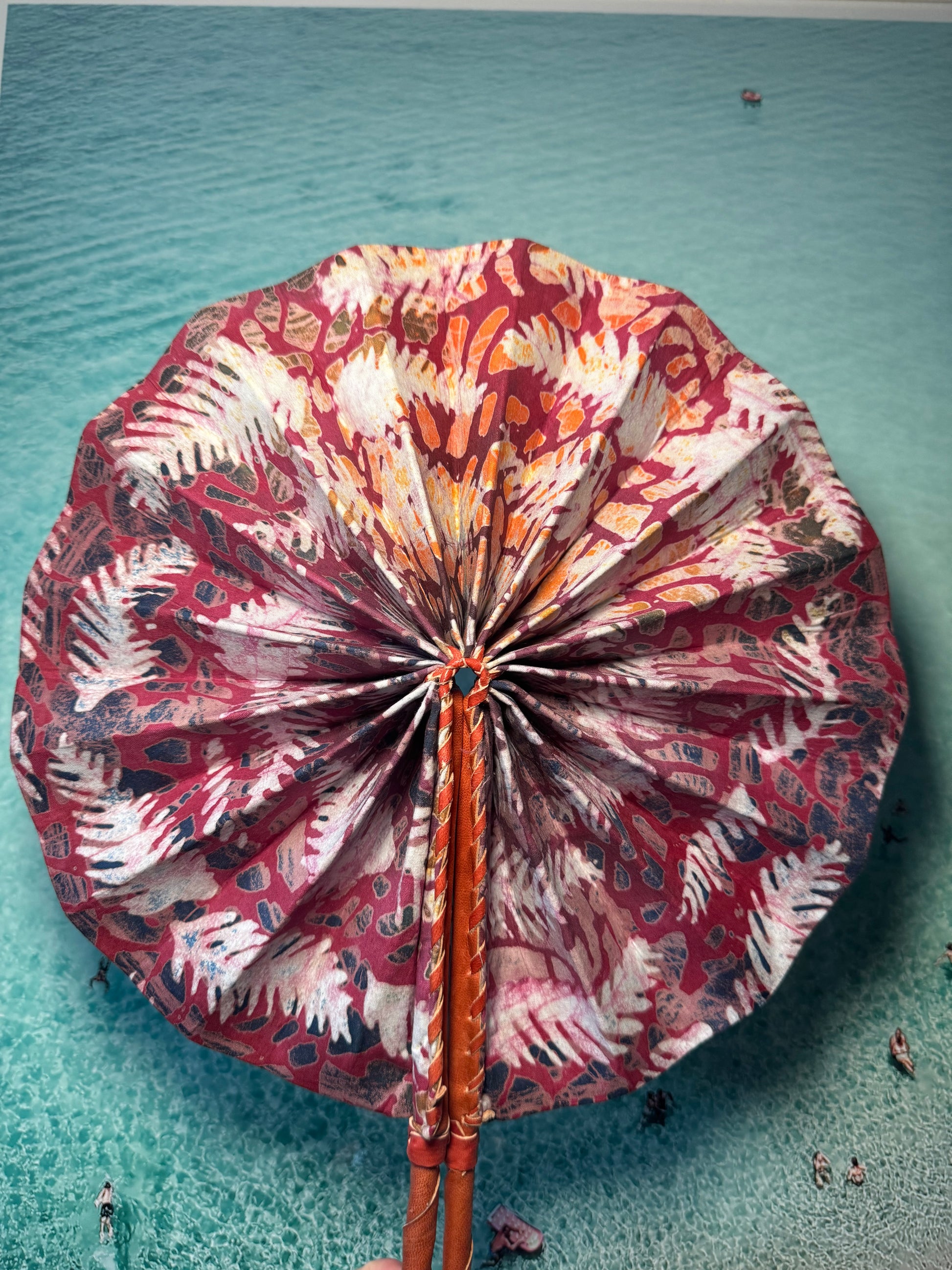 Feel the cool breeze with this one-of-a-kind handmade tribal print fan. Perfect for festivals, beach trips, or hot summer days. Keep it funky and functional with our unique design. Let the colours and patterns do the talking.